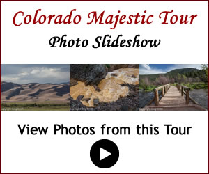 The incredible views and experience of touring Colorado including its majestic mountains and canyons, unique history and the intimate landscapes of the details of its terrain are quite different and in some ways more spectacular than just its famed Rocky Mountains. On this tour we will venture deep into the mountains and visit three of the state’s national parks, but will also travel on some of its most startling byways and discover some of its little known history along the way. Among our tour highlights will be visits to: Rocky Mountain National Park, Great Sand Dunes National Park, a brief visit to the Black Canyon of the Gunnison National Park, the Silver Thread Highway, Ouray, Creede, the Royal Gorge, and many other outstanding sites.